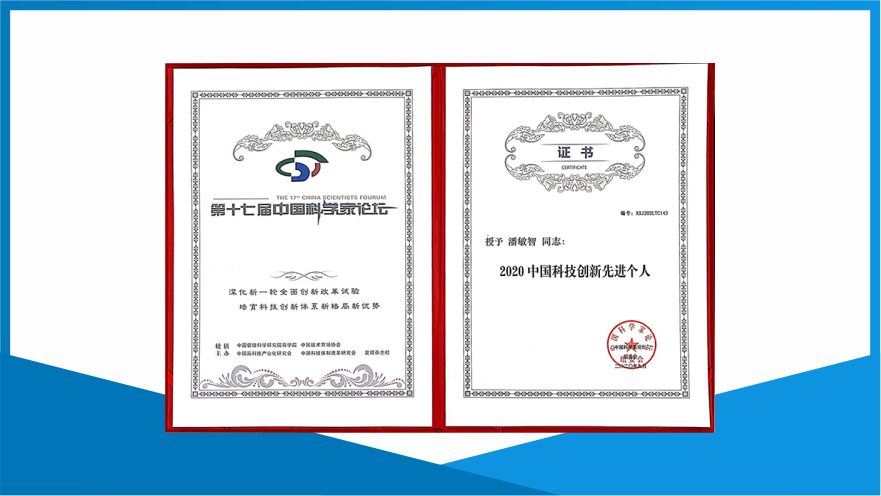 董事長(zhǎng)潘敏智榮獲2020年中國(guó)科技創(chuàng)新先進(jìn)個(gè)人 -