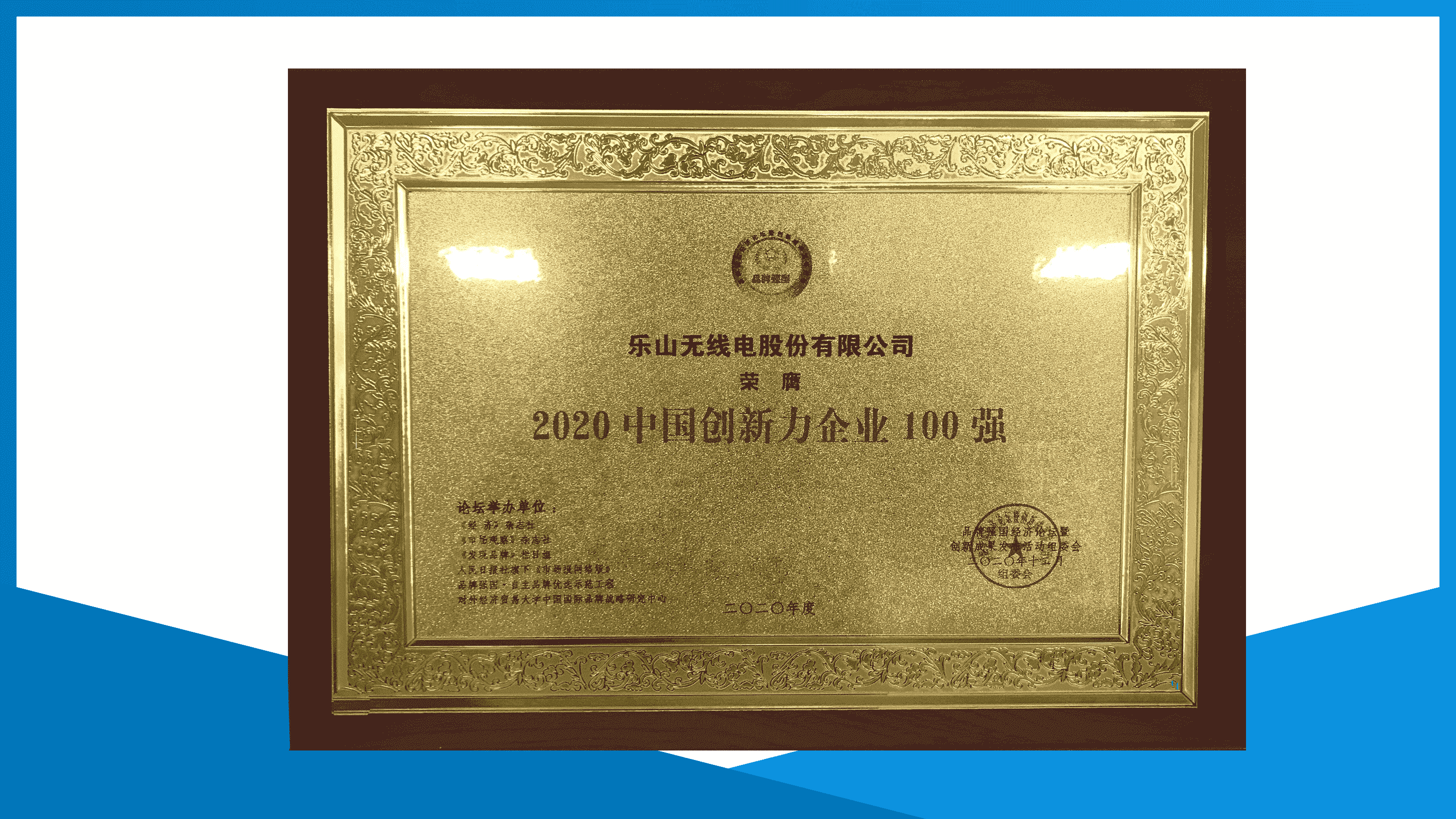 公司榮獲2020中國(guó)創(chuàng)新力企業(yè)100強(qiáng) -