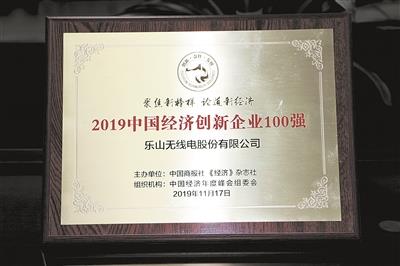 樂(lè)山無(wú)線電股份有限公司榮登“2019中國(guó)經(jīng)濟(jì)創(chuàng)新企業(yè)百?gòu)?qiáng)榜”
